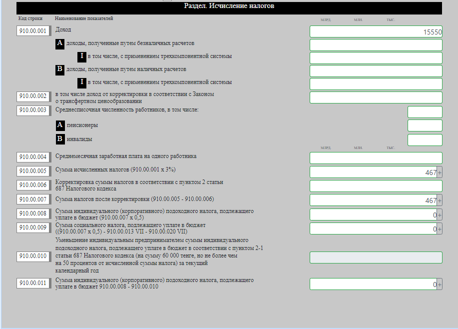Пример заполнения упрощенной декларации для субъектов малого бизнеса (Форма 910.00) за 1 полугодие 2020 года для ТОО
