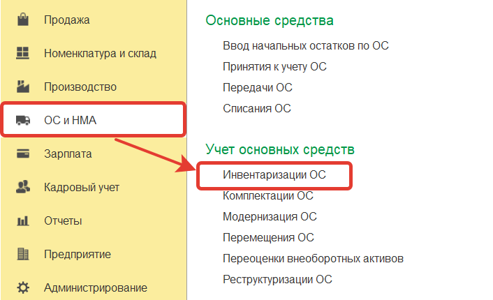 Для отражения результатов инвентаризации Основных средств в разделе ОС и НМА- Учет основных средств-Инвентаризация ОС