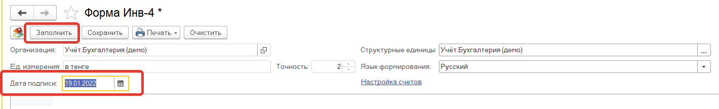 Выбираем дату подписи и заполняем отчет