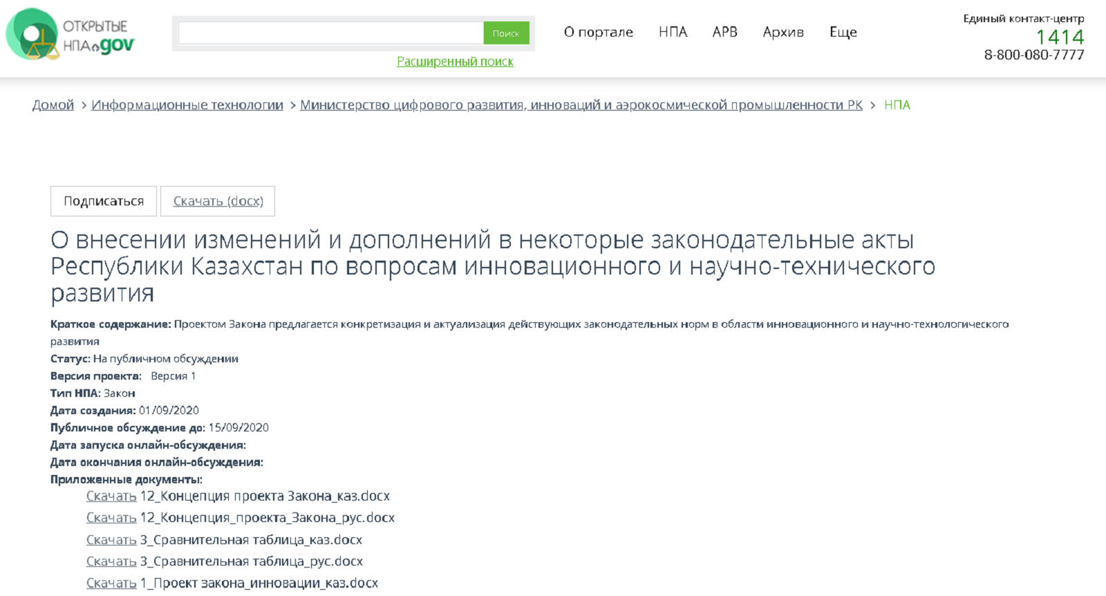 Проект Закона «О внесении изменений и дополнений в некоторые законодательные акты Республики Казахстан по вопросам инновационного и научно-технического развития», направлен на повышение инновационной активности в стране, а также выработку эффективной экосистемы поддержки отечественных разработчиков.