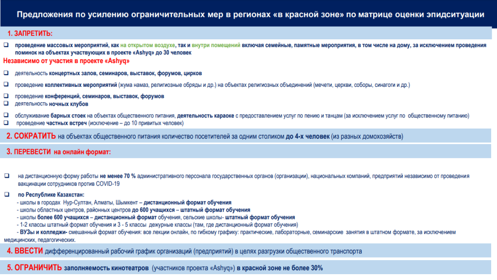 - в регионах, находящихся в «красной» зоне - до 00:00, лидерам проекта Ashyq - до 02.00;