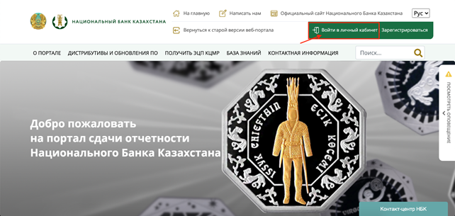 Для входа на Портал необходимо ввести адрес главной страницы «https://digital.nationalbank.kz» в адресной строке веб-браузера.