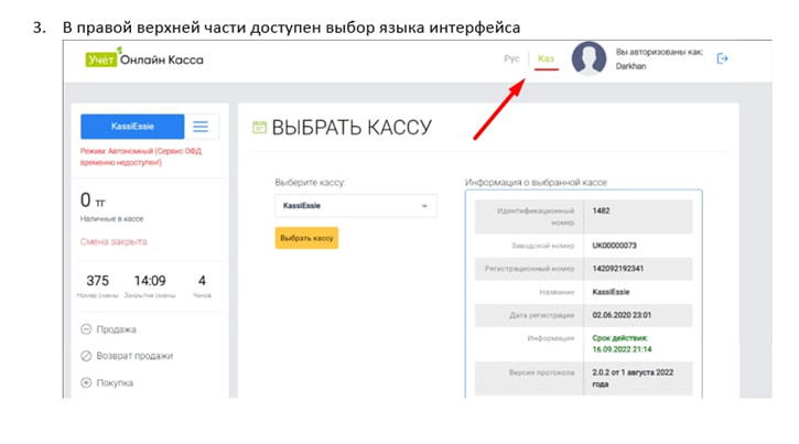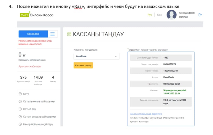 5. После того, как выбрали казахский язык, интерфейс и сам чек будут на казахском языке: