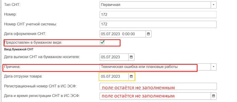 с даты устранения технических ошибок в ИС ЭСФ (СНТ оформляется на бумажном носителе в период возникновения технических ошибок);