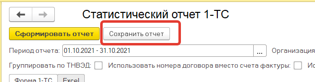 выбираем отчет 1ТС и нажимаем на кнопку создать отчет: