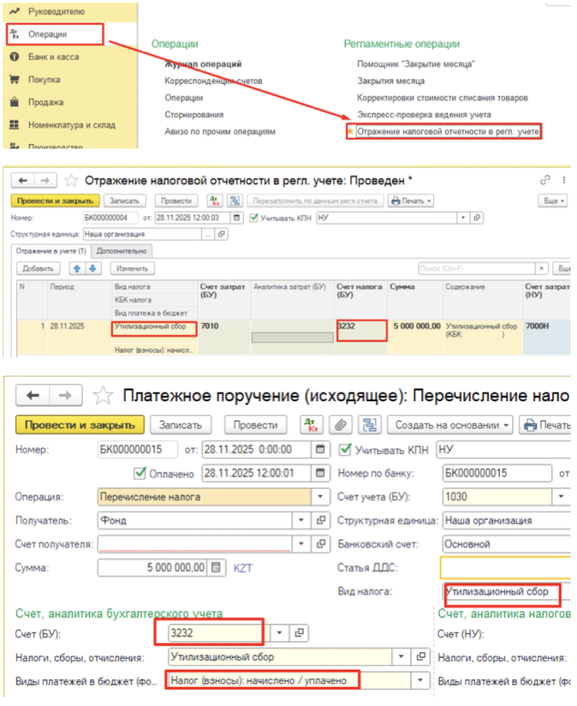 ТОО импортирует спецтехнику (товар) и оплачивает утилизационный сбор. В 1С начисление утилизационного сбора можно отразить вручную через документ «Операция (бухгалтерская)» ? Проводка Дт 7010 – Кт 3190 является некорректной?