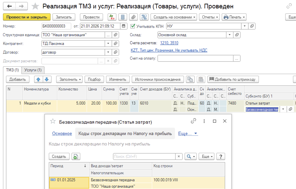 1. Каким документом в 1С оформляется передача товара в виде спонсорской помощи? 2. Какими проводками сопровождается данная передача? 3. В каких строках налоговых форм 100,00 и 300,00 должна отразиться данная операция? 4. Товар был приобретен без НДС; при передаче товара необходимо сверху накрутить НДС или можно в том числе НДС? 5. Если данная реализация должна отражаться в строке 300.00.001, а не будет отражаться в доходе формы 100,00, то между данными формами будет разница, что вызовет вопросы со стороны УГД?