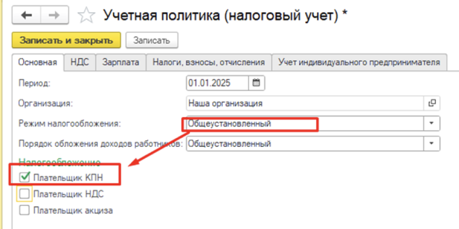 Необходимо проверить данные в Учетной политике 1С:
