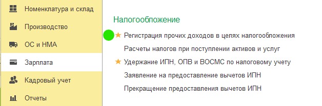 В программе 1С ПРОФ Бухгалтерия для Казахстана, ред.3.0 начисление дивидендов выполняется документом Регистрация прочих доходов в целях налогообложения с видом операции Доходы контрагентов. Документ можно выбрать в разделе Зарплата подраздел Налогообложение.