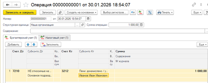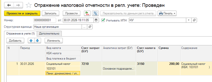 3. Создаем Отражение для пени по СН