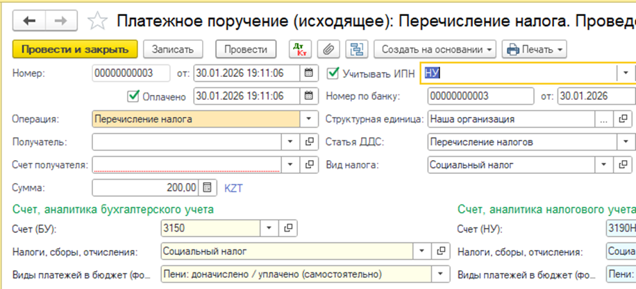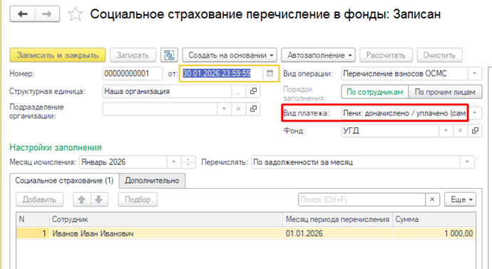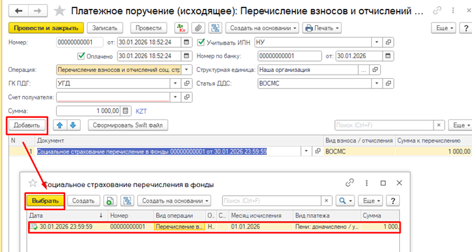 Для корректного отражения перечисленной пени по ВОСМС и СН в программе 1С, необходимо выполнить следующие: