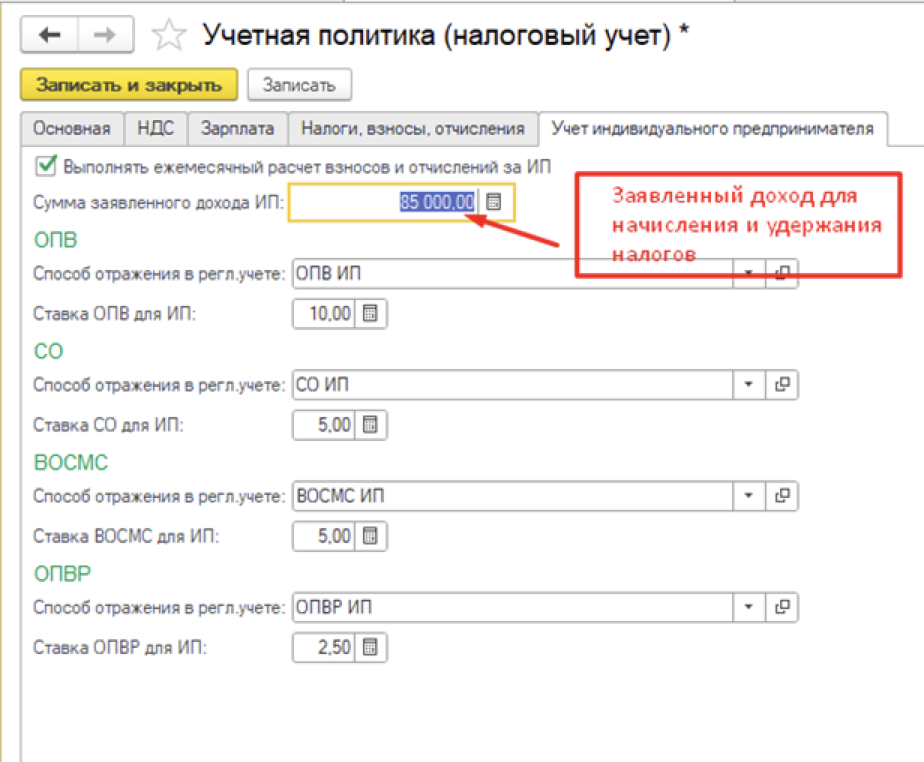 Для отражения начисления налогов за ИП необходимо сделать следующее: