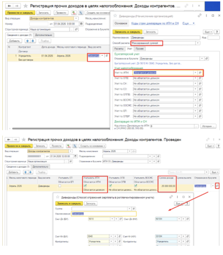 Для начисления дивидендов с удержание ИПН 5% в 2026 году необходимо: