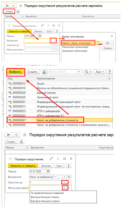 Для настройки в 1С округление налогов необходимо:
