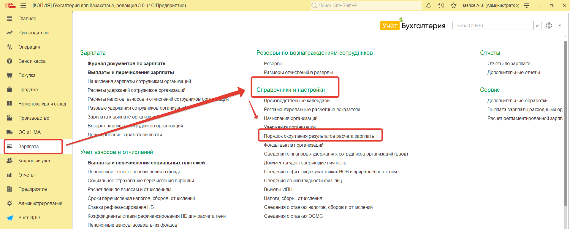 Регистр сведений доступен в разделе Зарплата - Справочники и настройки.