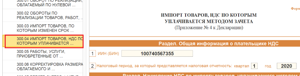ТОО на УНР, плательщик НДС, импортировал тягач с прицепом из Европы. НДС при растаможке оплатили методом зачета. Как правильно прописать в 1С строки 300.00 формы для автозаполнения отчета? Как прописать строки в 1С при оплате НДС методом зачета?