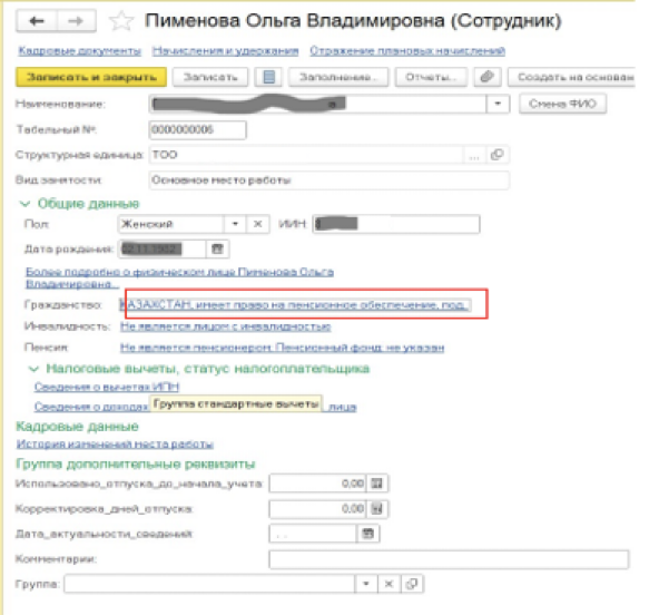 Откроется дополнительное окно, в ячейке Не подлежит социальному медицинскому страхованию поставить галочку...