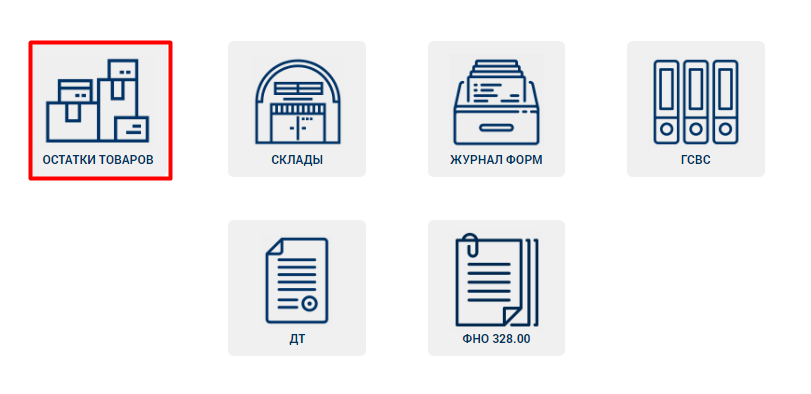 1. Для просмотра товаров на складе, необходимо выбрать пункт меню «Остатки товаров», находящийся на стартовой странице ВС. После перехода в пункт меню «Остатки товаров» отобразится: таблица с остатками товаров на складе фильтр для поиска товаров; кнопка «Настройка журнала».