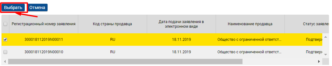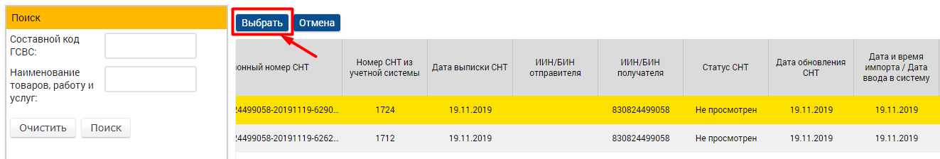 12. Выберите необходимую СНТ из списка и нажмите кнопку «Выбрать».