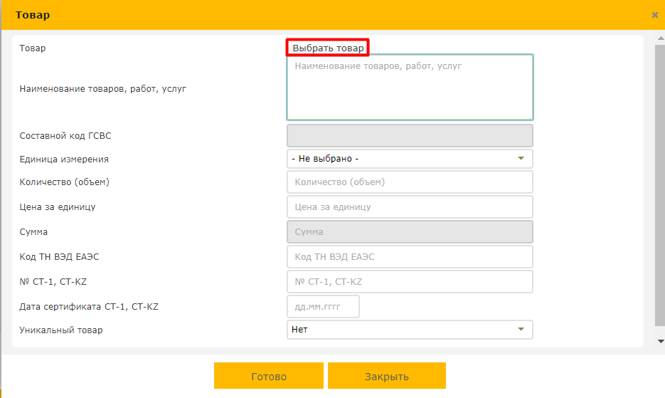 4. В открывшемся окне нажмите кнопку «Выбрать товар».