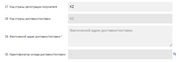 4. Далее заполните остальные поля разделы формы. Раздел G Данные по товарам, товара выбирается из ВС, для выбора товара осуществляется при нажатии на кнопку «Добавить товар из склада». Заполните все поля данного раздела согласно ФЛК. Остальные поля разделов описаны выше в пункте 5.1.5.4.1 Оформление СНТ по территории РК.