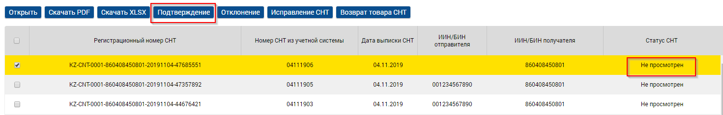 4. Подписанная СНТ принимает статус «Подтвержденный».