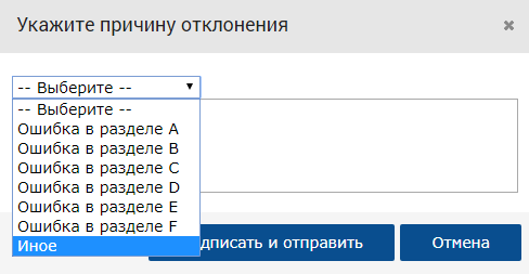 2. После нажатия кнопки «Отклонение» укажите причину отклонения: